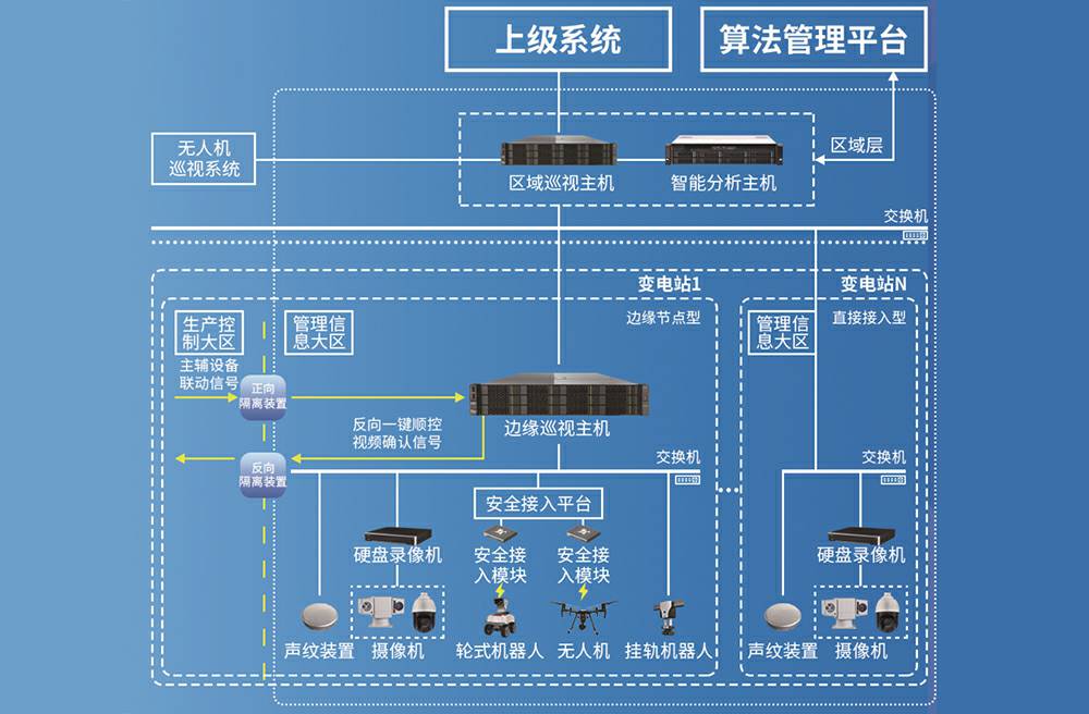 通过人工智能技术的应用,实现可视化巡视图像的智能识别、自动分类、数据分析,配合自主巡视任务制定,实现例行巡视、特殊巡视、专项巡视、自定义巡视及静默监视,有效降低运维人员巡视工作量和巡视压力。